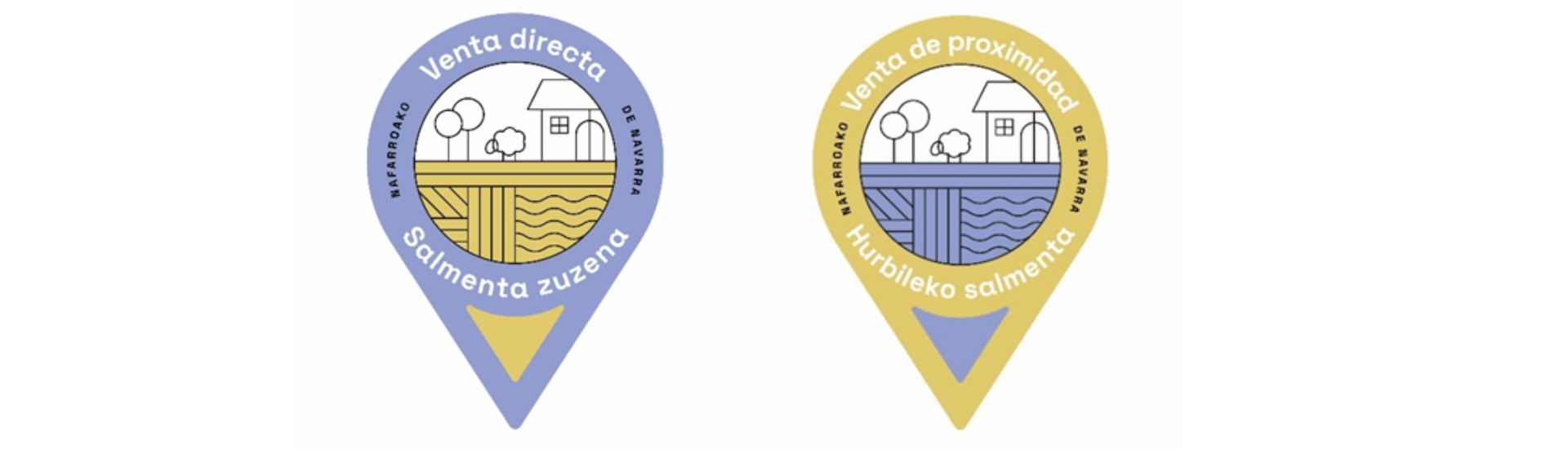 Los dos tipos de venta cuenta con logotipos distintos y cada uno con sus denominaciones en euskera y castellano y colores diferenciados. Así, el de ‘venta directa’ (en euskera, salmenta zuzena) es de color azul, mientras que el de ’venta de proximidad’ (hurbileko salmenta, en euskera) es amarillo, ambos desarrollado a partir de tres elementos gráficos: el icono de la geolocalización, la fecha de dirección y un paisaje rural.